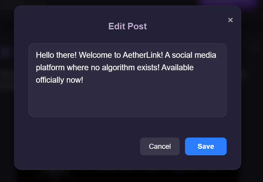 Sharing your thoughts, updates, and moments with the community is at the heart of the AetherLink experience. Creating a post is simple and can be done directly from your main feed.