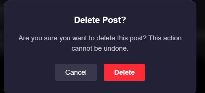 Important: Deleting a post is a permanent action. Once a post is deleted, it cannot be recovered.